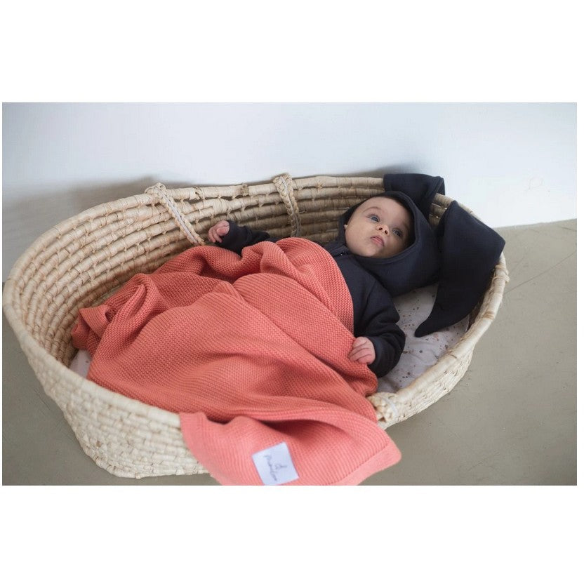 Diese Bambusdecke wird ein Schmuckstück in Ihrem Set sein und Sie von der Geburt Ihres Babys bis zum Vorschulalter begleiten. Die Decke besteht aus Bambusfasern mit Baumwollzusatz, was sie extrem weich und angenehm anzufassen macht. Die doppelte Dichte des Gestricks sorgt für Wärmekomfort im Winter und verhindert Überhitzung im Sommer. Sie hat thermoregulierende Eigenschaften. Sie ist so konzipiert, dass Luft eindringen kann, auch wenn das Kind sie auf dem Gesicht trägt.