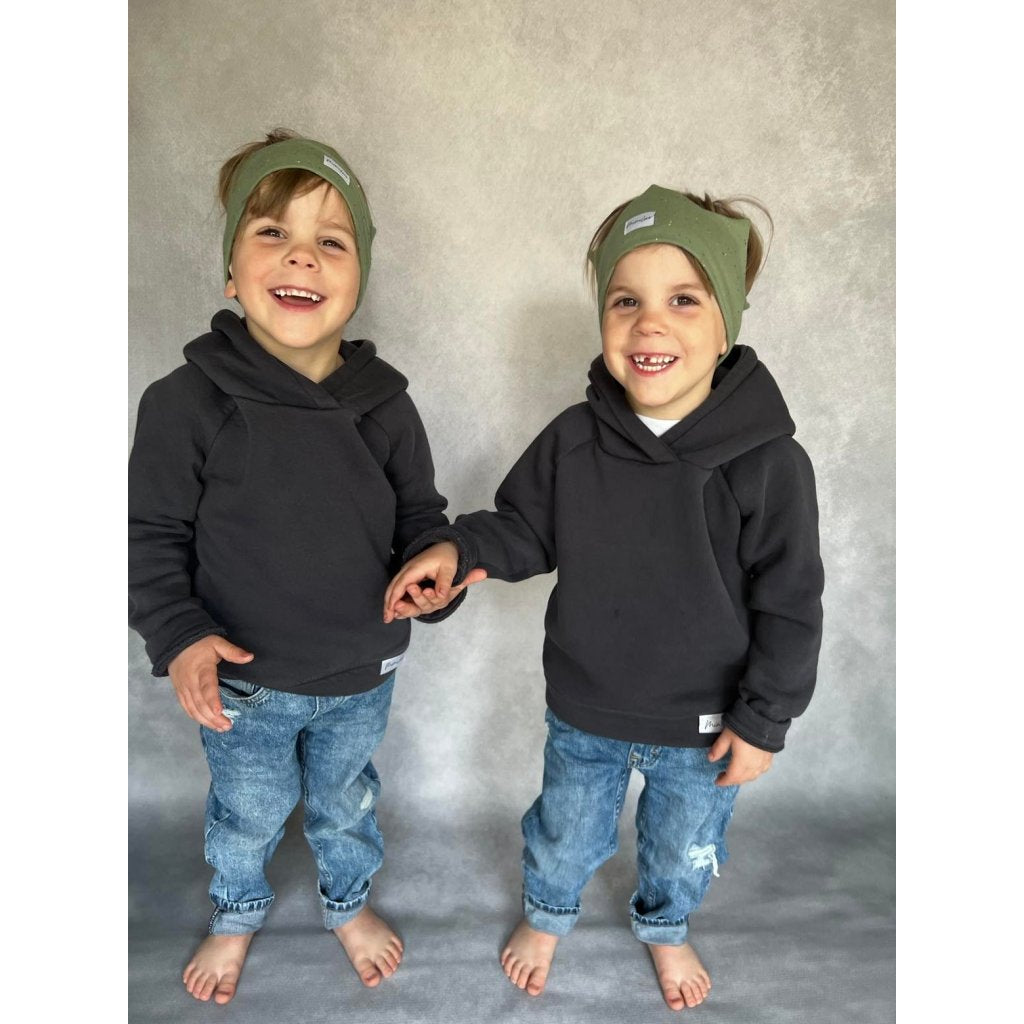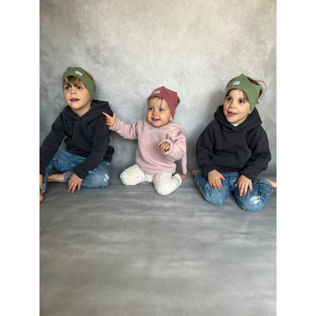 Das Stirnband besteht aus einem angenehm festen Baumwollmaterial, das gut am Köpfchen sitzt und nicht verrutscht. Es ist weniger dehnbar, daher empfehlen wir, die passende Größe sorgfältig auszuwählen.