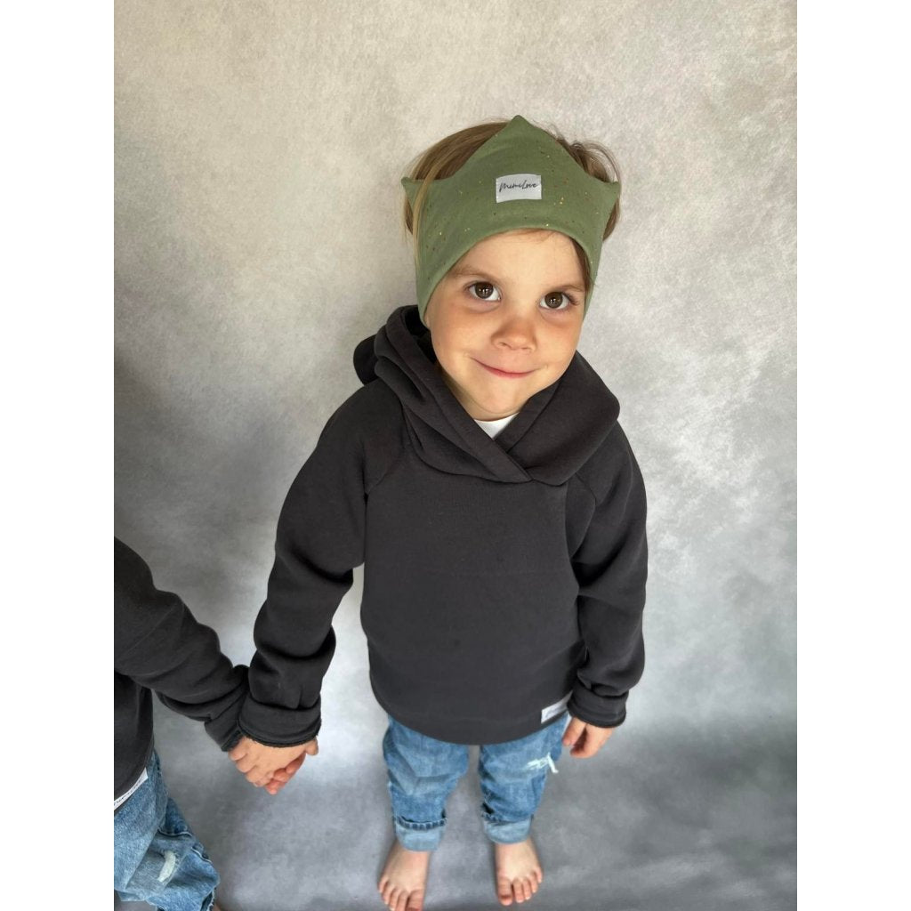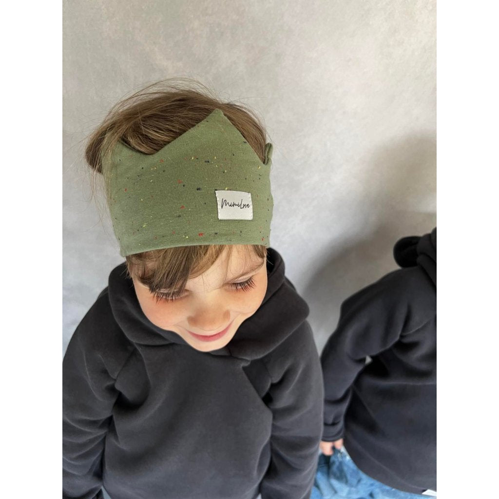Baumwoll-Stirnband Krone 4 - 8 Jahre – Flaschengrün mit Punkten