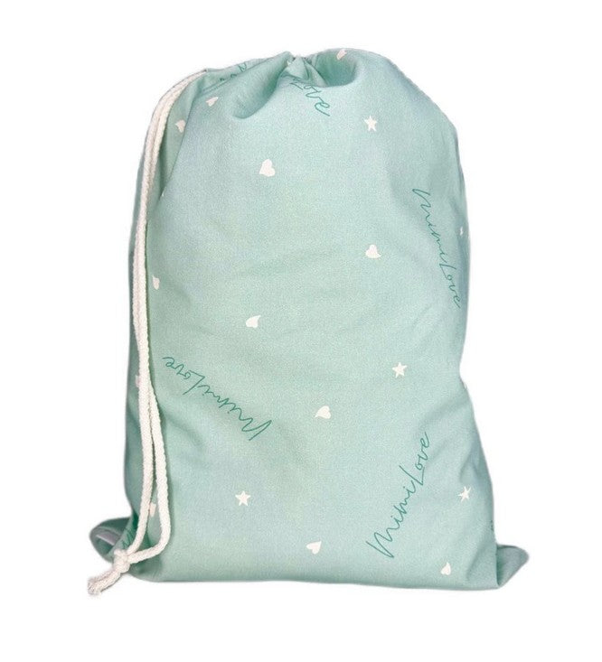 Die Bettwäsche ist in einem Baumwollbeutel im gleichen Muster verpackt.