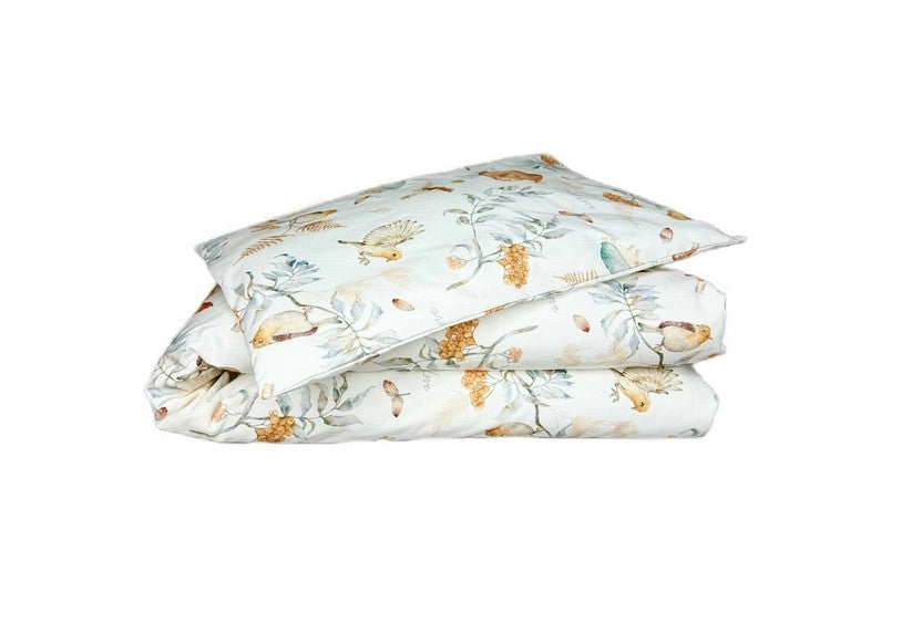 Die Bettwäsche ist in einem Baumwollbeutel im gleichen Muster verpackt.