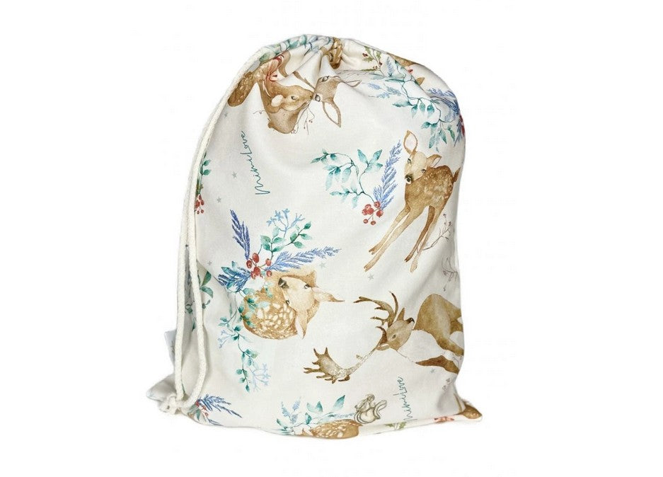 Die Bettwäsche ist in einem Baumwollbeutel im gleichen Muster verpackt.