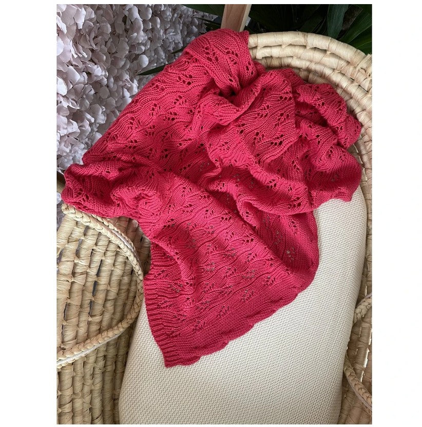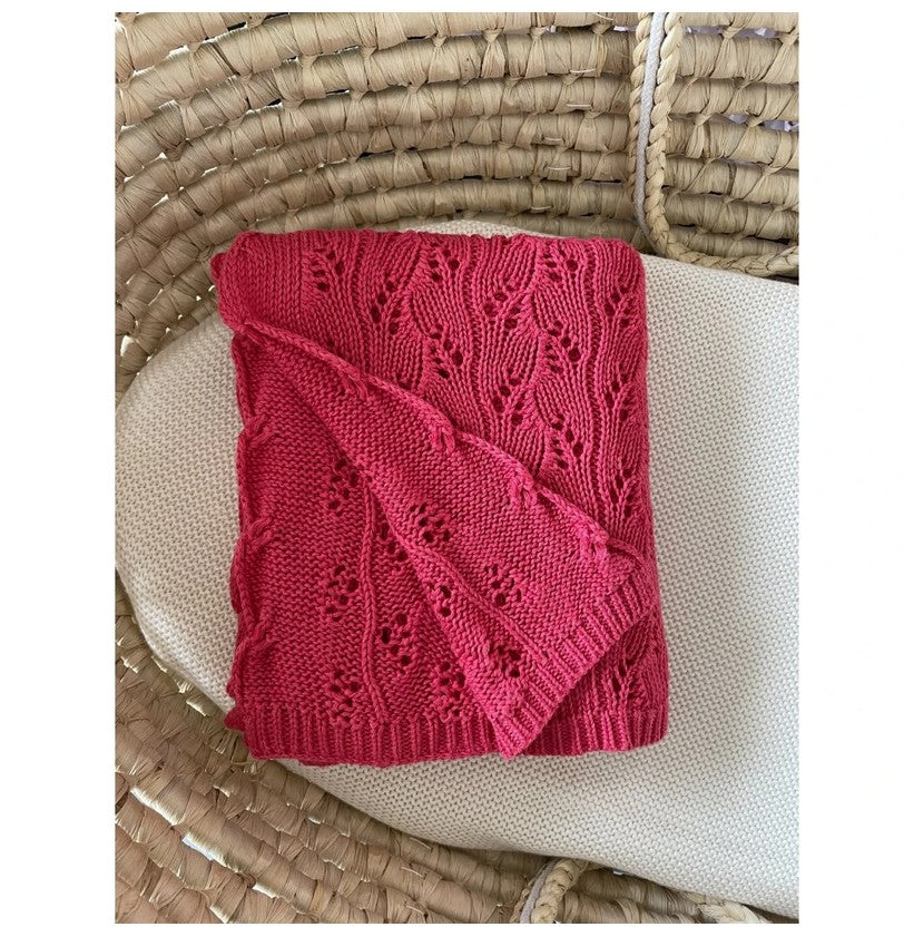 Wunderschöne Decke in schönem durchbrochenem Strickgewebe in der Größe 80x100 cm aus 50% Baumwolle und 50% Bambusgarn.