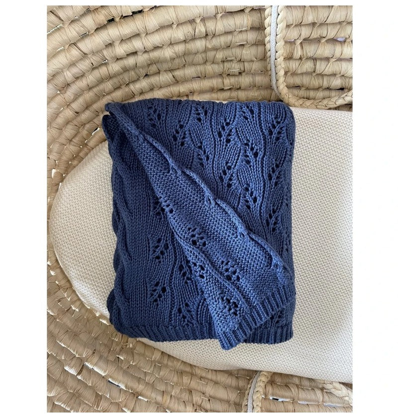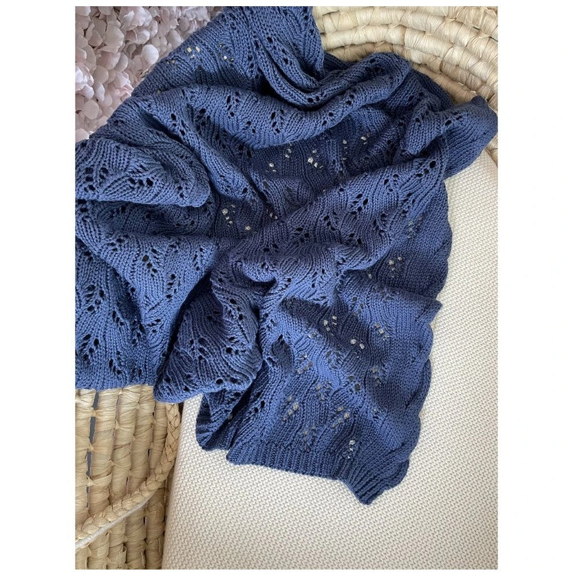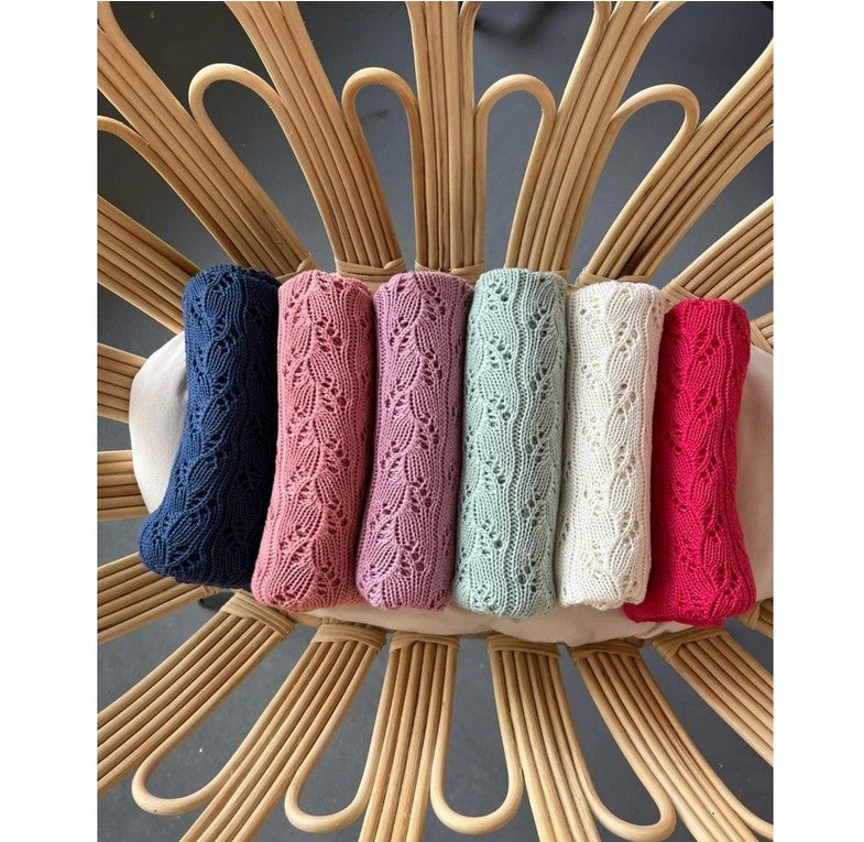 Wunderschöne Decke in schönem durchbrochenem Strickgewebe in der Größe 80x100 cm aus 50% Baumwolle und 50% Bambusgarn.