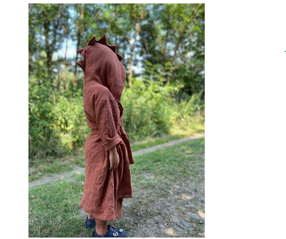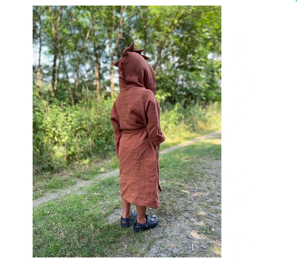 Kinderbademantel mit Kapuze DINO Größe 3-6 Jahre Karamell
