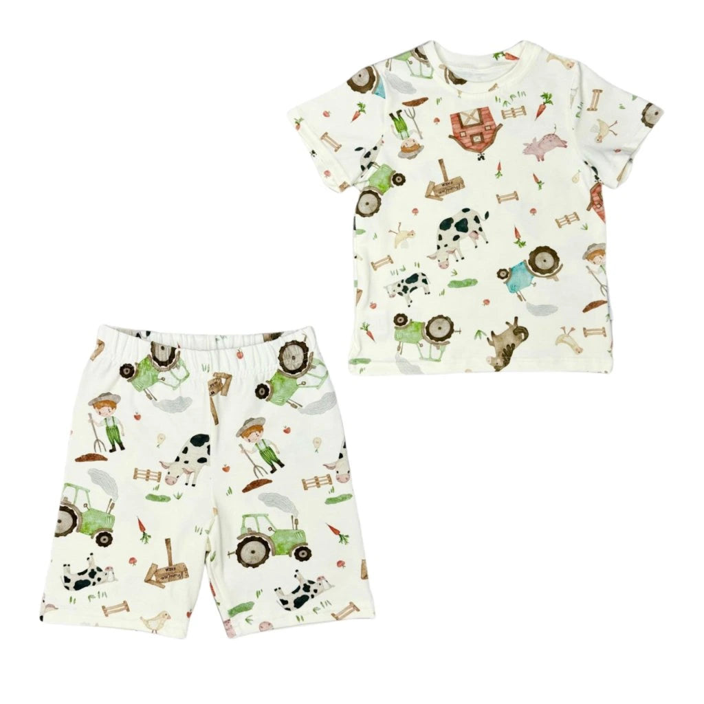 Das Oberteil ist als T-Shirt mit kurzen Ärmeln gestaltet, die kurze Hose mit Bündchen. Die Taille ist mit einem bequemen, festen, breiten Gummizug versehen. Der Schlafanzug ist ganzjährig tragbar.