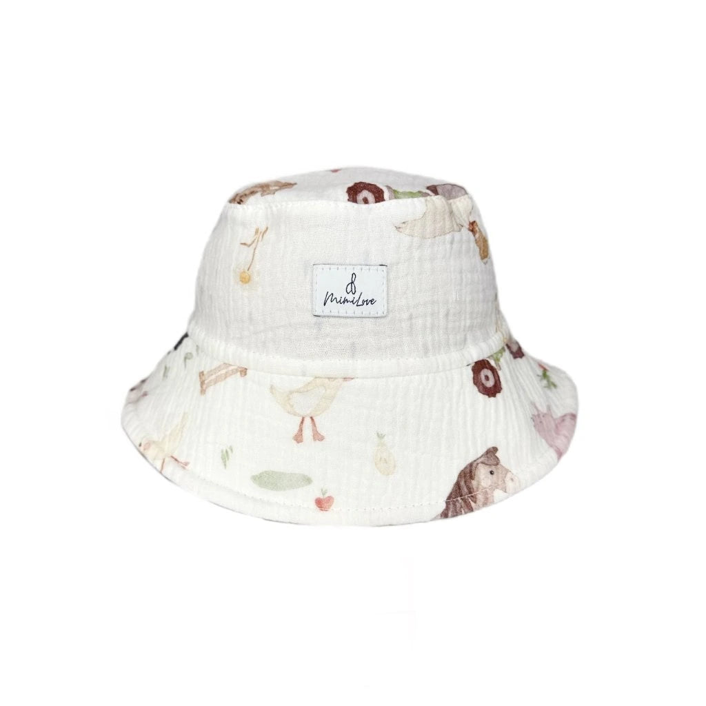 Der Hut besteht aus 100% Musselin-Baumwolle, es ist sehr angenehm für die Berührung und ist leicht.